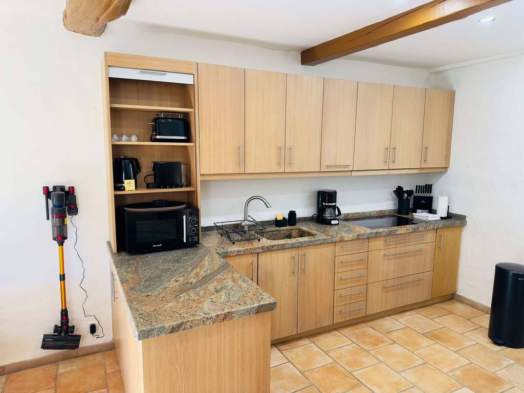 Cuisine équipée (lave-vaisselle, micro-ondes, congélateur, cafetière à dosettes).